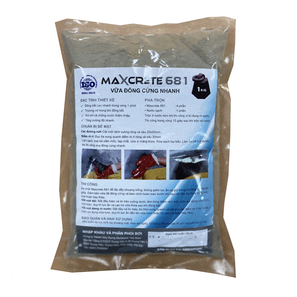 Xi măng đông cứng nhanh MAXCRETE 681 là dòng vữa dùng trong xây dựng với đặc tính thủy hóa cùng khả năng đông cứng nhanh nên có thể phát huy tối ưu vai trò năng chặn sự xâm thực của nước ngay tức thì cũng như về lâu dài. Chúng được dùng để trám các lỗ rò rỉ của nước với các vị trí quan trọng, mang lại độ bền lâu và an toàn cho các công trình hiện nay. (Sản phẩm thay thế cho Davco K11 Rapidplug đã ngừng bán)